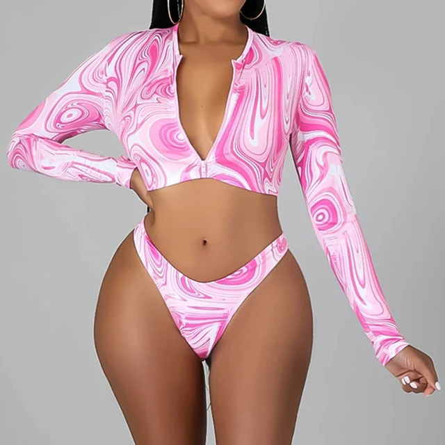 Chic Comfort: The Title Long Sleeve Zipper Backless High Waist Bikini Set Explained